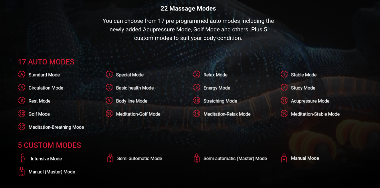 • 22 Different massage modes