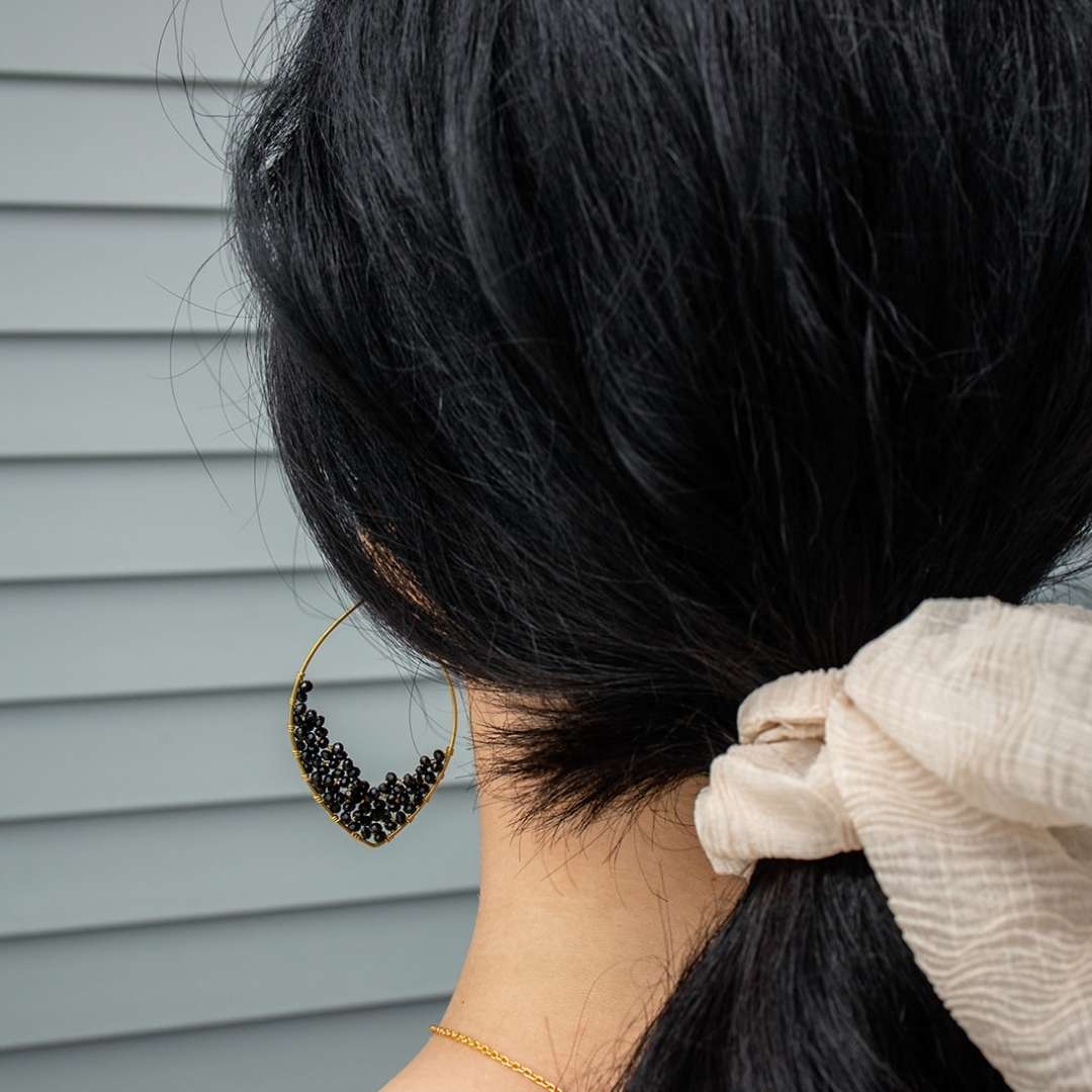 The Dusk Earrings feature delicate teardrops with cascading crystal beads. Their fashion-forward design and elegant feel make them a must-have for the season.