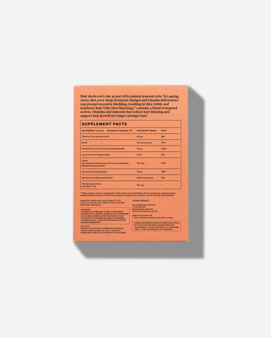 Hairology™ is a once-daily ingestible capsule from Vida Glow’s Advanced Repair range. Hair sheds every day as part of its natural renewal cycle. Yet age, stress, hormones and vitamin deficiencies can prompt weakness, damage and excessive shedding. Targeting the cause of thinning lacklustre hair, Hairology™ optimises the environment necessary for hair to grow and thrive.