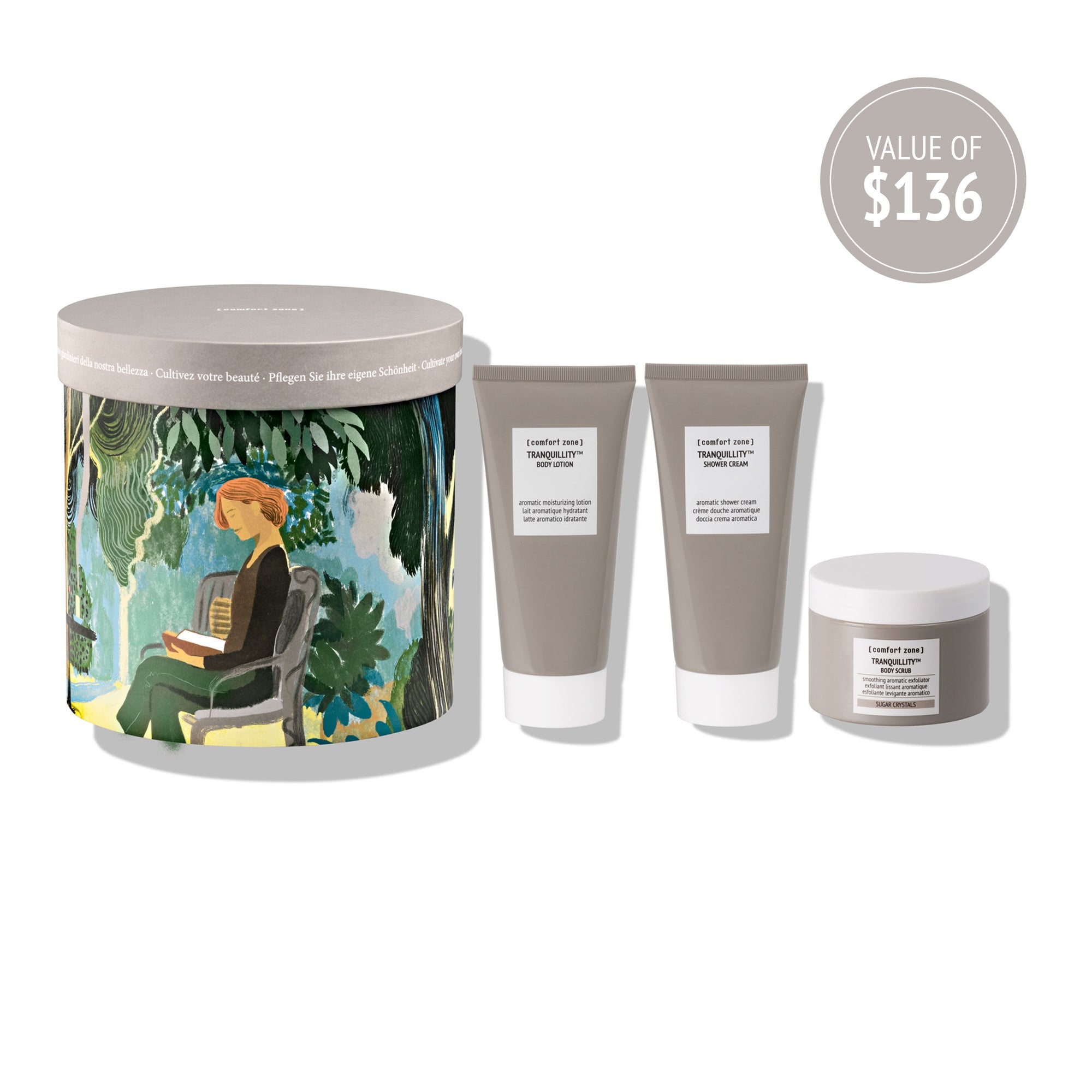 TRANQUILLITY™ BODY LOTION Apply and massage until fully absorbed. TRANQUILLITY™ SHOWER CREAM Apply the product on wet skin or with a sponge. Massage and rinse. Rinse thoroughly in case of contact with eyes. TRANQUILLITY™ BODY SCRUB mix and apply to dry skin, paying special attention to dry, rough areas. Massage with circular motions calibrating the pressur