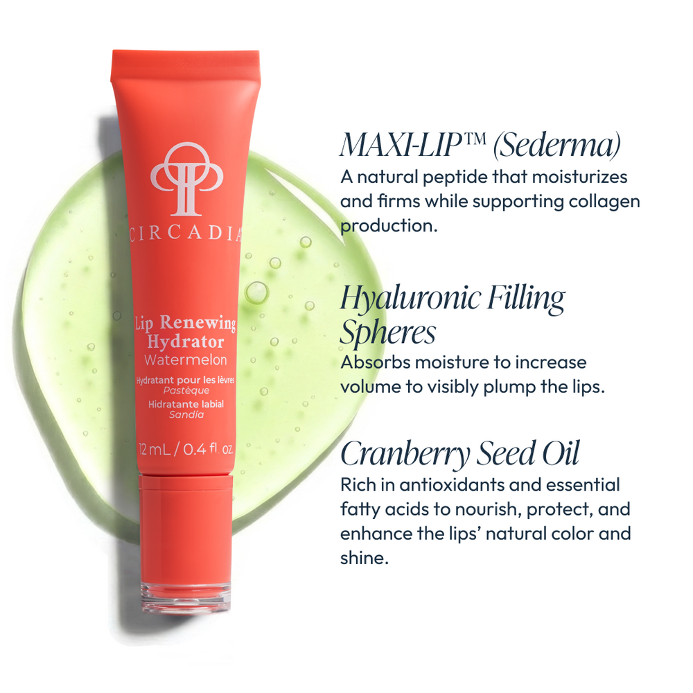 Circadia's Lip Renewing Hydrator is a natural solution that firms, plumps, and hydrates lips. With collagen-boosting peptides and plumping Hyaluronic Filling Spheres, it enhances lip fullness and elasticity.