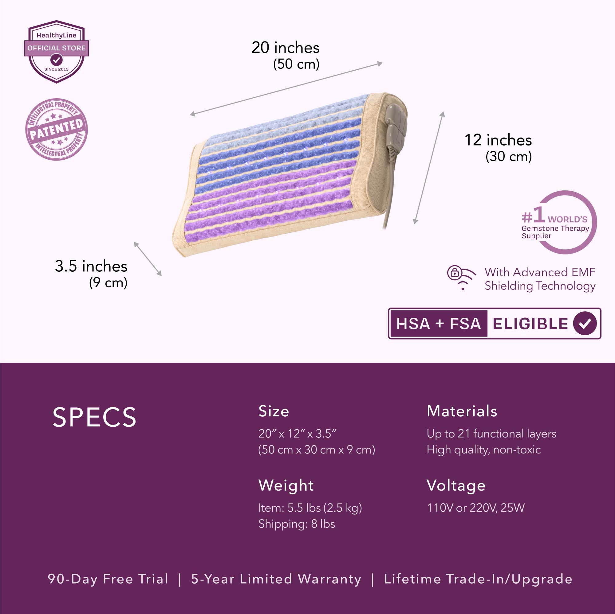 The Rainbow Pillow combines heated gemstone and far-infrared therapy to deliver soothing heat, specifically targeting the neck and shoulders, promoting muscle relaxation, faster recovery, and improved sleep quality. It also features photon lights, offering benefits such as improved energy levels and reduced inflammation. This compact pillow supports spiritual grounding during rest or meditation.