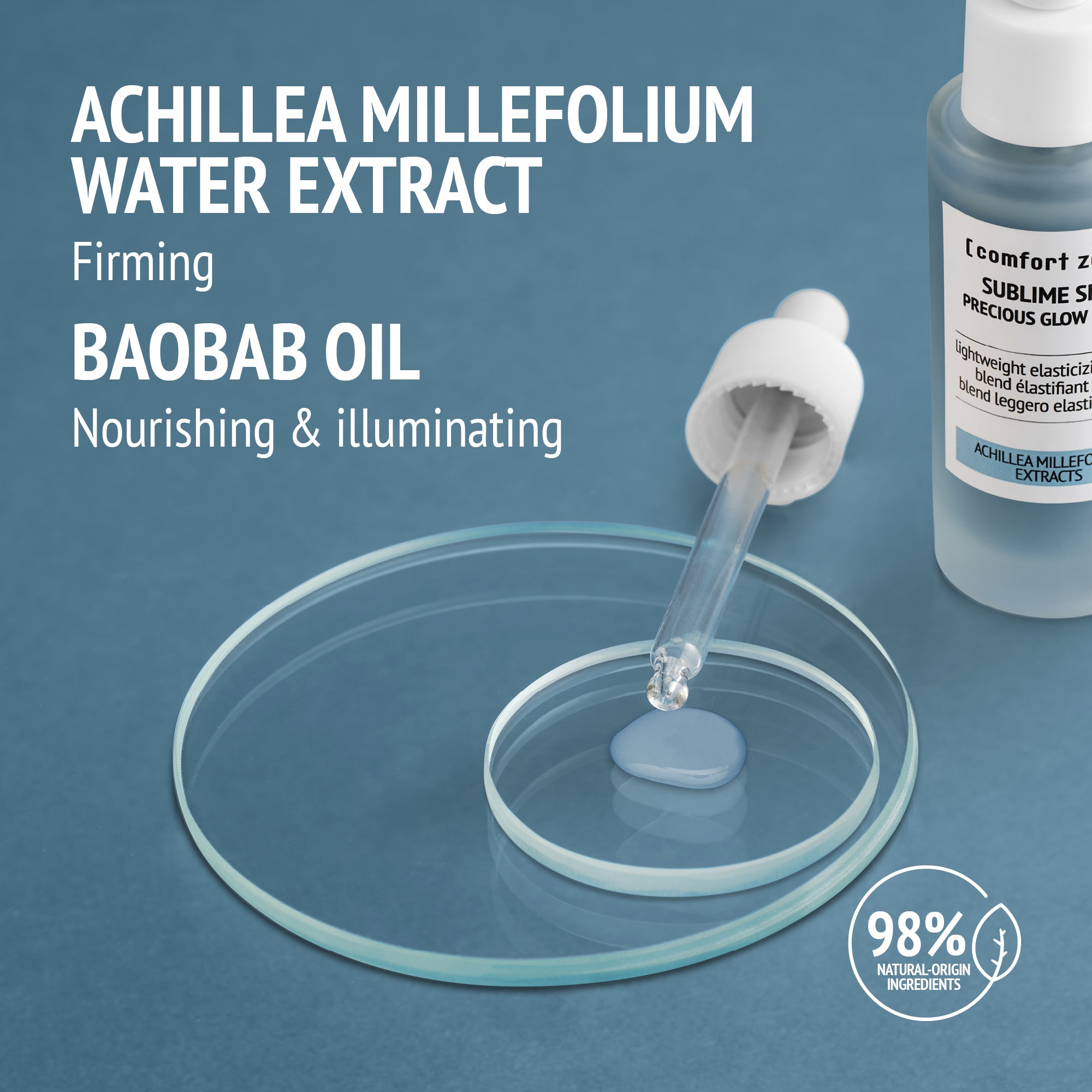Enjoy a radiant, healthy glow with the new Sublime Skin Precious Glow Drops. This innovative dual-phase blend combines the aqueous extract and oleolite of Achillea Millefolium, capturing the richness of the plant's functional compounds in every drop. Enriched with Baobab oil, it helps support the skin barrier and improve skin elasticity. With its biomimetic texture, this formulation nourishes your skin without weighing it down and leaves it smoother and firmer with each use!