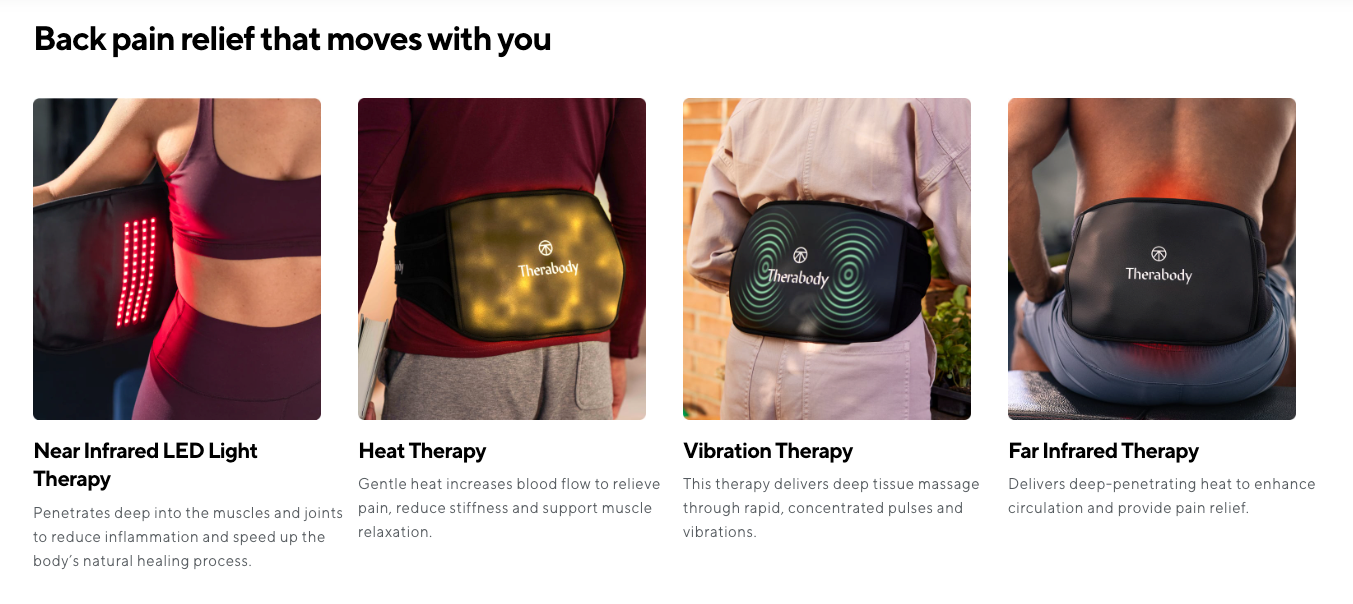 ThermBack LED combines four therapies to relieve lower back pain, boost healing and improve mobility. It offers customizable treatment options for fast-acting lower back pain relief.